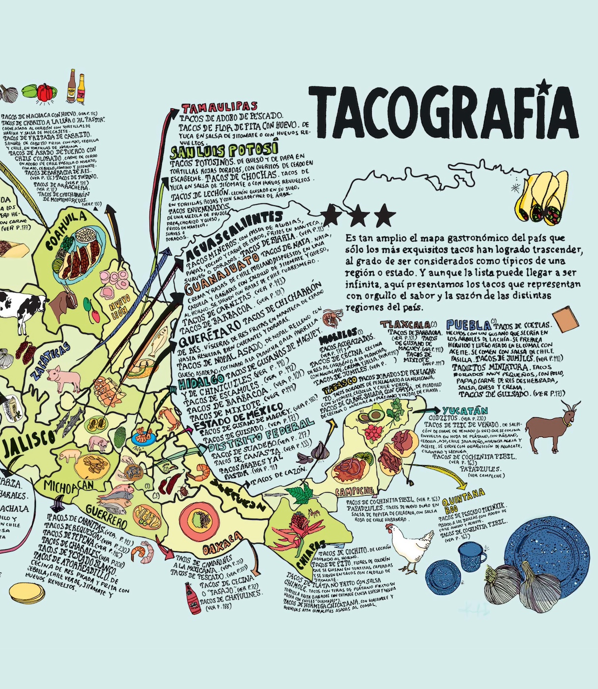 Originaire du Mexique, le « taco » a plus de 500 ans ! Cet en-cas (son nom est similaire à celui de sandwich aux États-Unis) se compose d’une galette (tortilla) et d’une garniture. Il en existe plusieurs sortes, les plus traditionnels étant ceux à la viande (tacos al pastor), sorte déclinaison du chawarma libanais où la viande est cuite sur une rôtisserie verticale (kebab style !) ou au poisson (tacos de pescado).